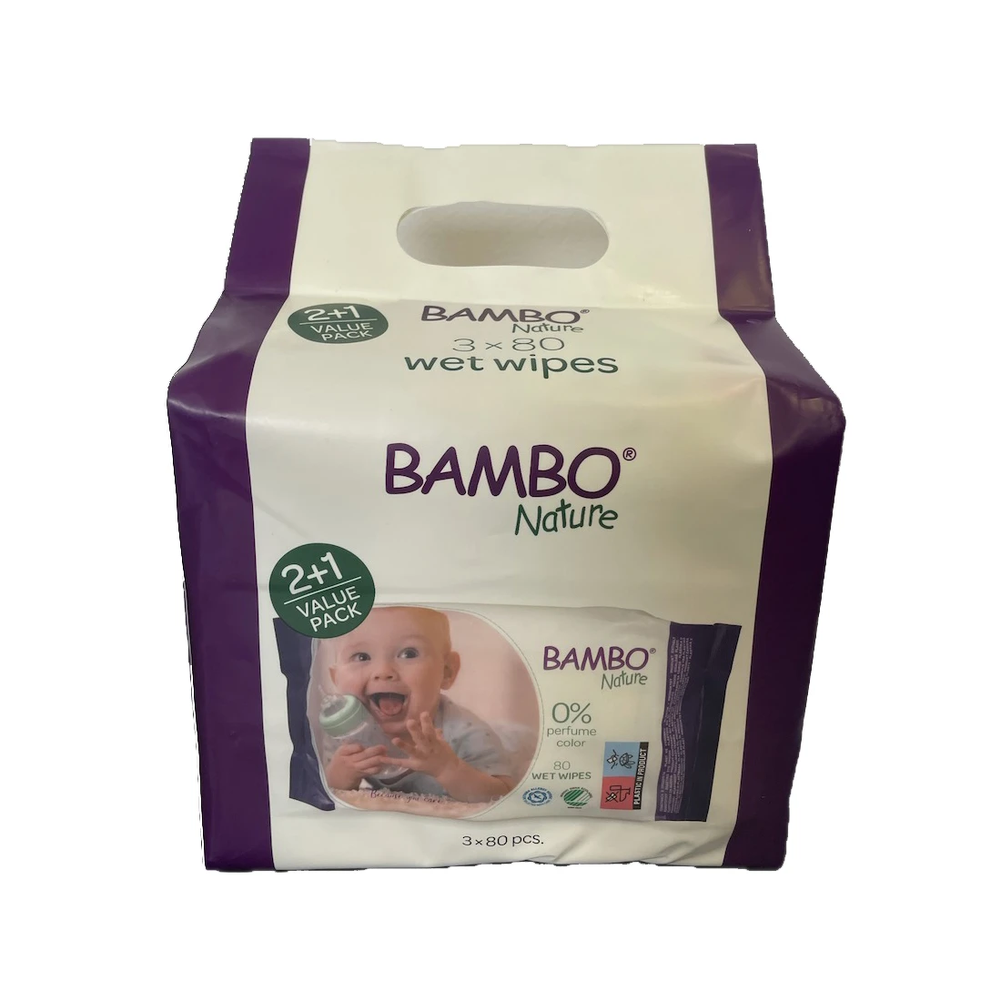 Bambo Nature Eco-Friendly Wet Wipes - 3 x 80 Packs | QAR 18