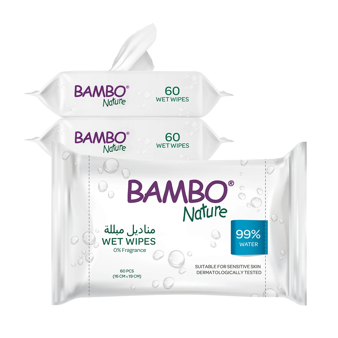 Bambo Nature Water Wipes Value Pack (3x60s) - Only QAR 21