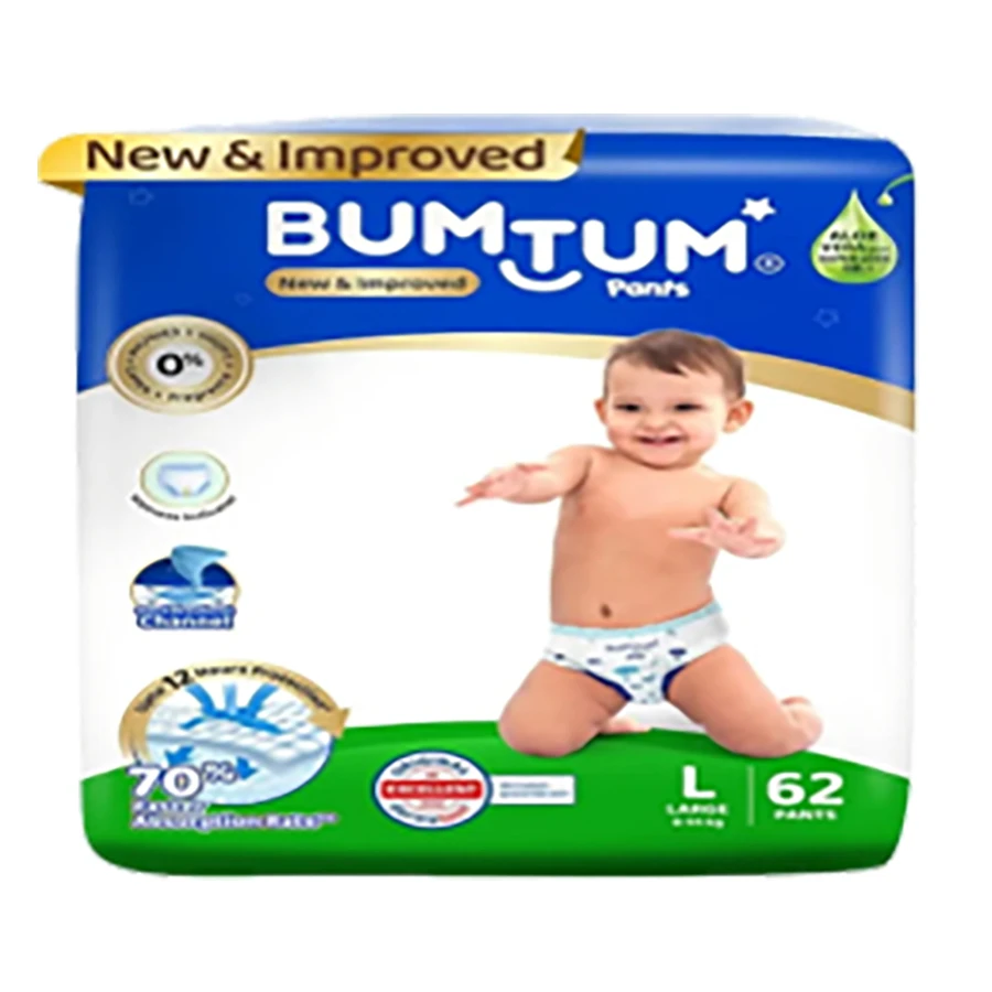 Bumtum Large Diaper Pants (9-14kg) - 62 Count with Aloe Vera